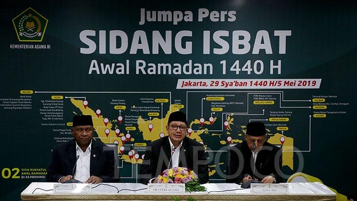 "Sidang Isbat secara mufakat bersepakat untuk menetapkan bahwa 1 Ramadhan tahun 1440 Hijriah jatuh pada esok hari, hari Senin tanggal 6 Mei 2019," kata Menag Lukman.